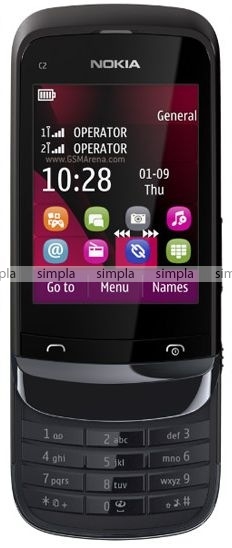 Nokia C2-03 - отличный телефон, работающий на платформе Series 40 6th Edition (initial release), оснащенный TFT-дисплеем, отображающим до 65 тыс. цветов, с диагональю 2.6" и камерой на 2 Mpx, делающей снимки с разрешением 1600 x 1200 px. Оснащен мощным аккумулятором на 1020 mAh, который позволяет аппарату работать до 400 часов в режиме ожидания и до 5 в режиме разговора. Для коммуникации может предложить: Web-браузер, EDGE, стерео Bluetooth, и, конечно, USB-порт. Для любителей музыки есть аудио выход на 3.5 мм.